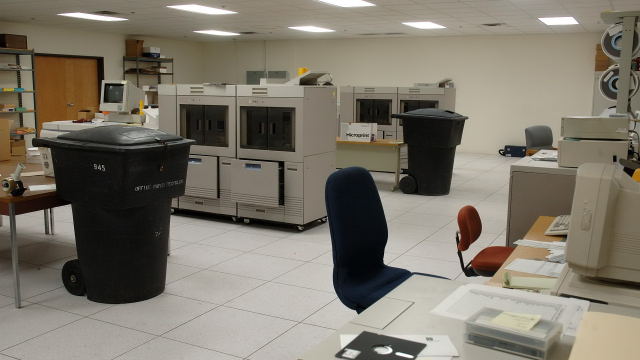 Above: The floor plan for the new facility which was located on West Parkside Lane near the Deer Valley Airport. It features a 6500 sq. foot data processing center with a 90,000 cartridge capacity library and 14,000 sq. feet of warehouse space. The total sq. footage was 33,871. It came with 3,600 AMP 277/480 V service with room for expansion so we'd always have enough power. The two computer areas would be "raised" floors, 18 inches, enabling both cabling and A/C (mainframe equipment are designed to be best cooled from beneath. But they were trenched 18 inches deep so they would be level with the rest of the building so no ramps needed! Why such a large data processing center when the equipment was getting smaller over time? It's because in the years of having the business we were growing faster than the equipment was getting smaller.